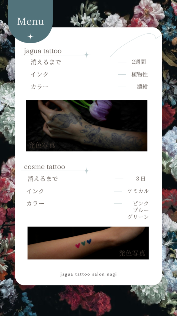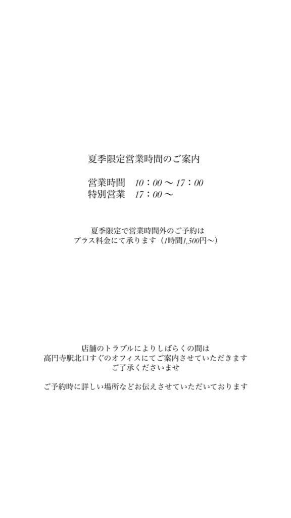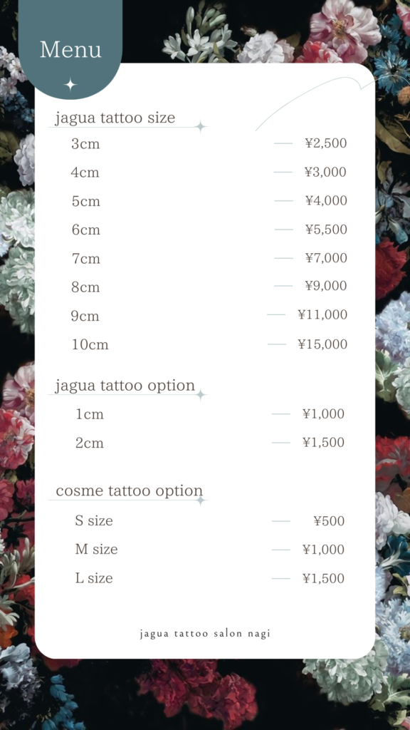 menu -メニュー- 料金はサイズにより変わります当店では分かりやすくするためサイズによるカテゴライズ料金表のみでご案内しております ご予約は公式LINEから 予約枠の空き状況はLINE VOOMにて公開していますお気軽にお問い合わせくださいID:734zpkqv